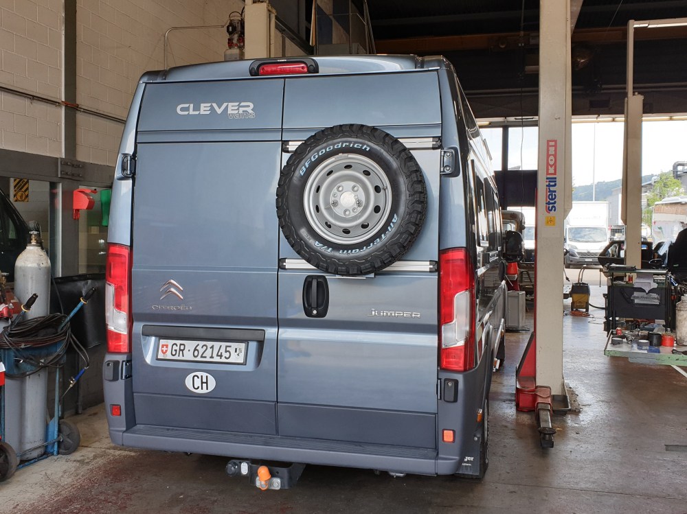 Was Besitzern von Autos mit grossen Stauräumen oder Fernreisemobilen nur ein müdes Lächeln ins Gesicht treibt, stellt sich für den Kastenwagenreisenden mit Jumper/Ducato/Boxer-Basis als Herausforderung dar: Wohin mit dem zweiten Ersatzrad?