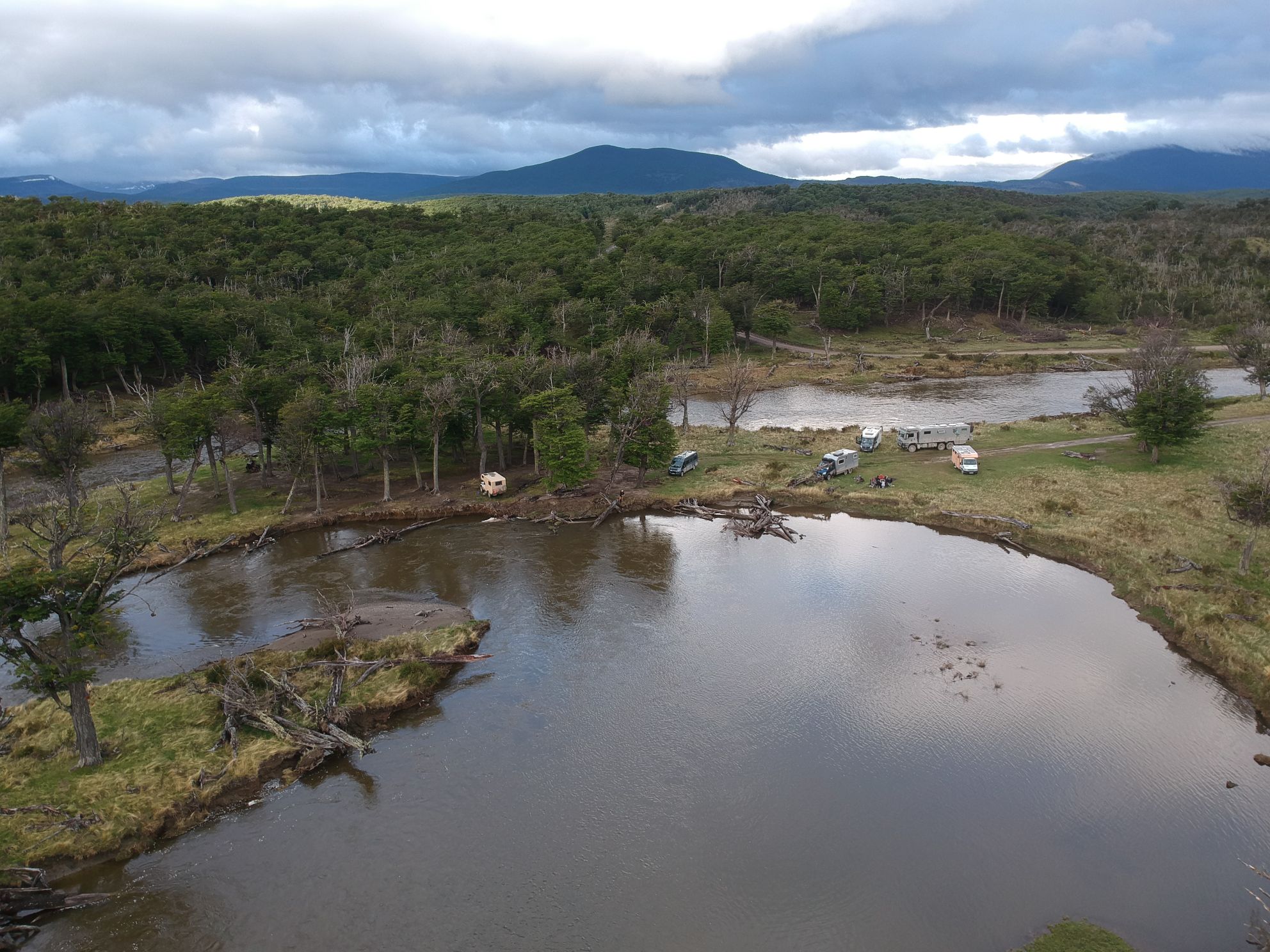 Dann geht es wieder zurück zu Oski, wir suchen unseren Platz für die kommende Nacht und finden ihn wenige Kilometer entfernt in einer Flusschleife des Rio Larsiparsahk. Hier stossen auch noch andere Abenteurer aus unser Gruppe zu uns, zwei deutsche Weltenbummler sind auch anwesend.