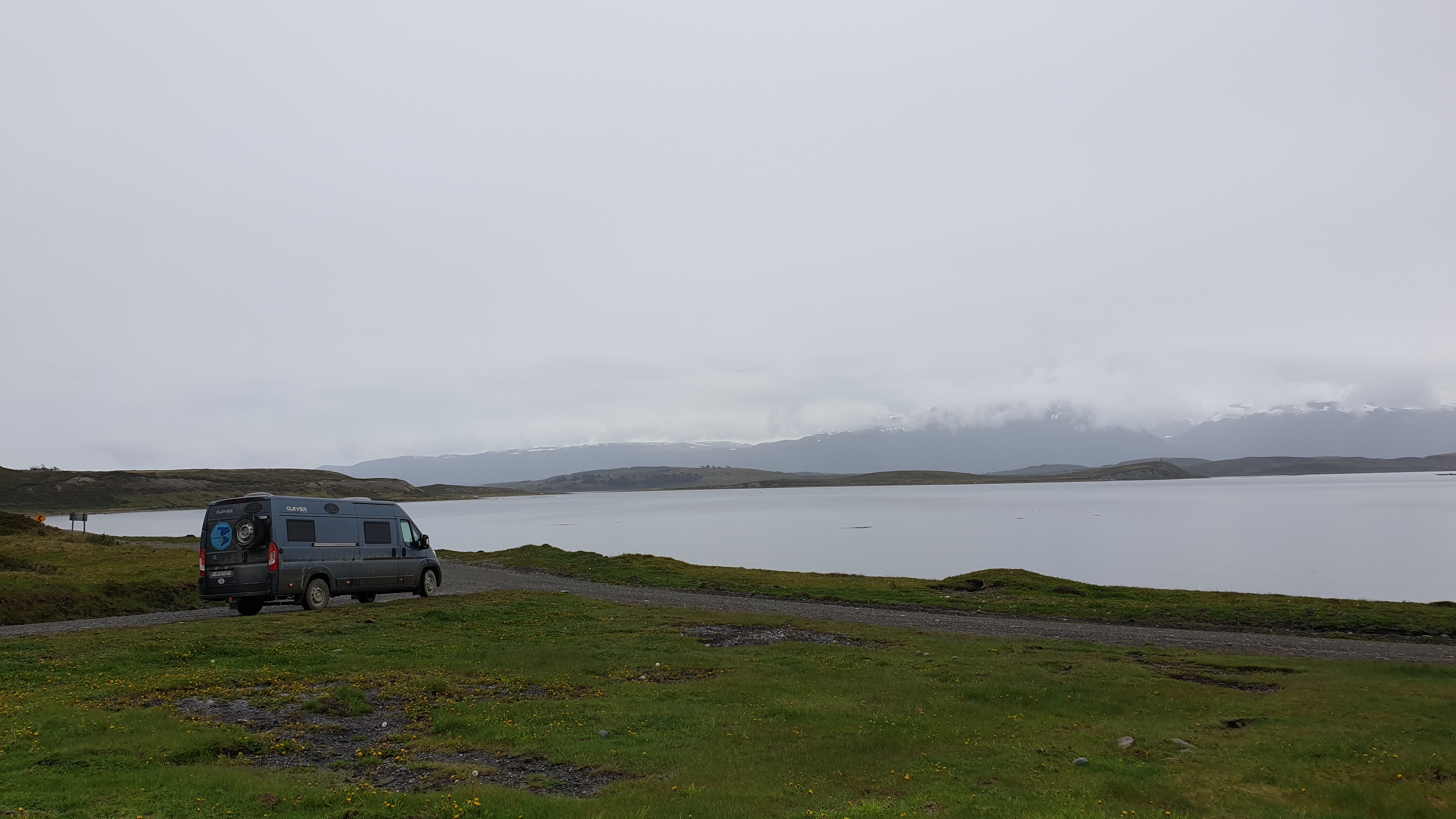 Auf dem Gelände der Estancia erreichen wir auch den südlichsten Punkt unserer Tour: 54°53’03.0″S / 67°18’58.1″W und verweilen an diesem Ort einige Minuten trotz Schmuddelwetter. Ein unscheinbarer Moment, der aber in unsere Geschichte eingeht…