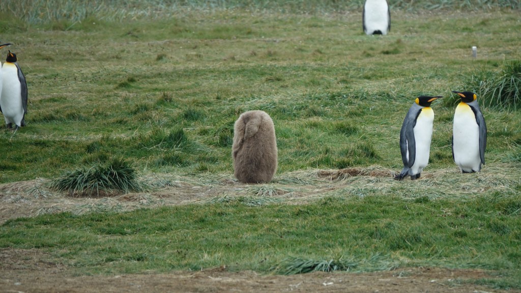 24.11.2019: Königspinguine verbindet man normalerweise entweder mit dem Zoo oder der Antarktis. Auf Feuerland sind sie Exoten, die es vor vielen Jahren in einem Sturm hierher verschlagen hat. Und zwar unweit von unserem einsamen Übernachtungsplatz. Also rauf auf die Waschbrettpiste und ab zur Reserva Natural Pingüino Rey. Ein kleines Besucherzentrum, einige Wege in der kargen Landschaft und Beobachtungsunterstände. Wirklich nah kommt man den Pingus hier nicht, dafür habe sie ihre Ruhe.