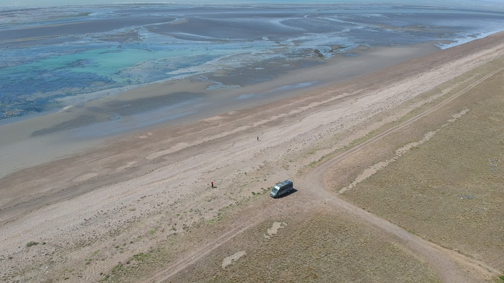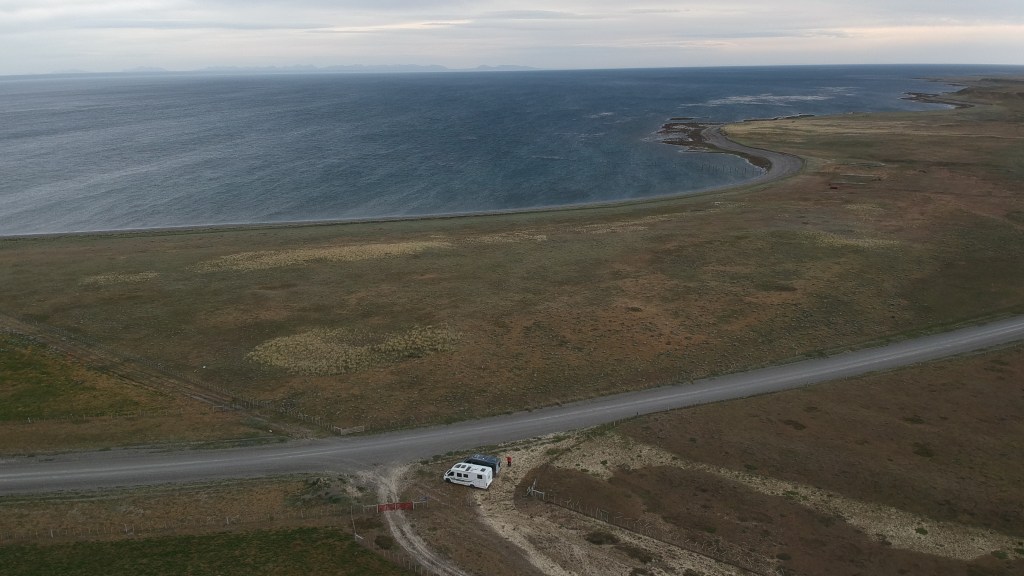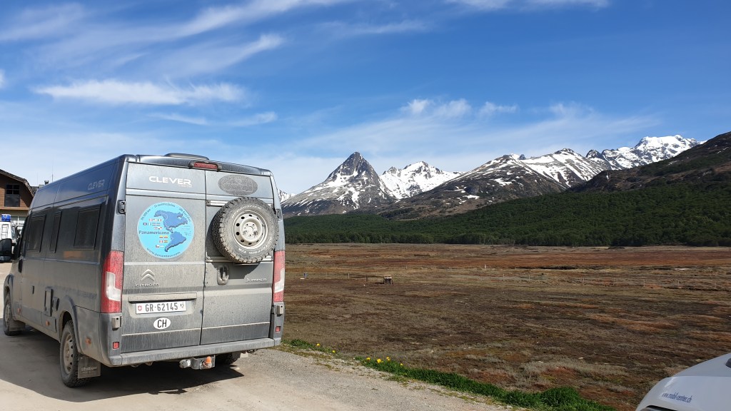 23.11.2019: Wir ändern die Richtung: Ab diesem Blog geht die Reise nordwärts. Von Ushuaia fahren wir wieder über die Südausläufer der Anden und den Paso Garibaldi in die wüstenartige Landschaft von Nordost-Feuerland. Und wir wechseln das Land mit dem Grenzübertritt nach Chile. Statt an der Grenzstation zu übernachten, zieht es uns an die Bahía Inútil, eine weite und einsame Bucht. Hier finden die beiden Camper aus Graubünden ein windiges Plätzchen am Rand der Schotterpiste…