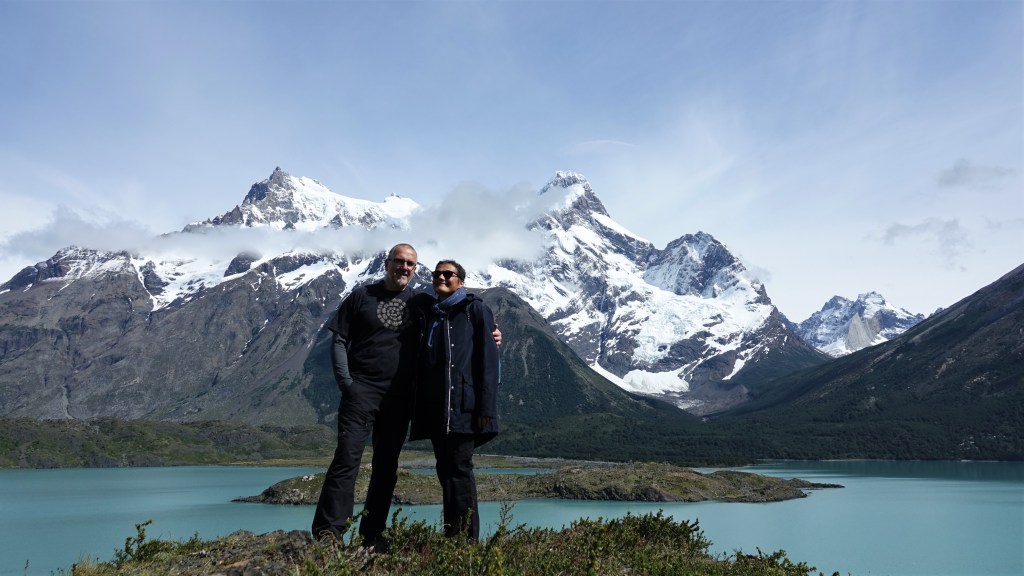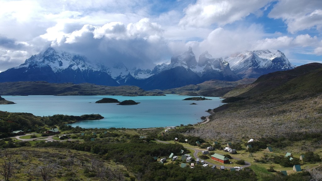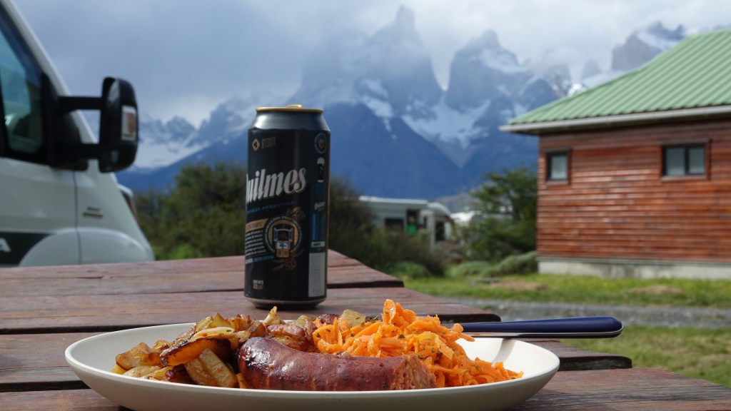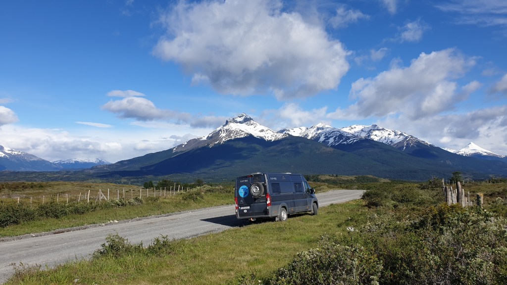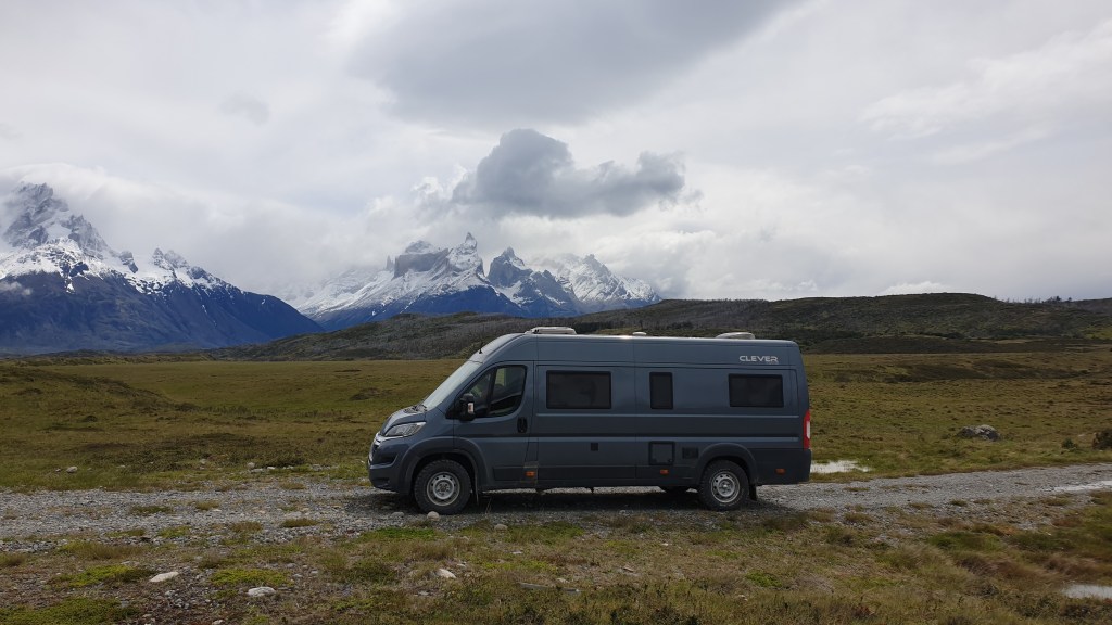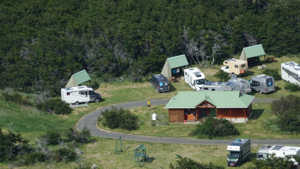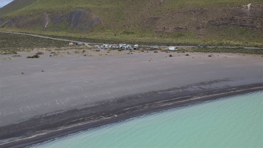 Am Nachmittag verlassen wir zwar den Nationalpark, behalten die beeindruckenden Berge aber noch im Blick. Das Nachtlager bildet ein Parkplatz an der Laguna Amarga, eine salzige Lagune, die so ganz anders als die Gletscherseen der letzten Tage ist.
