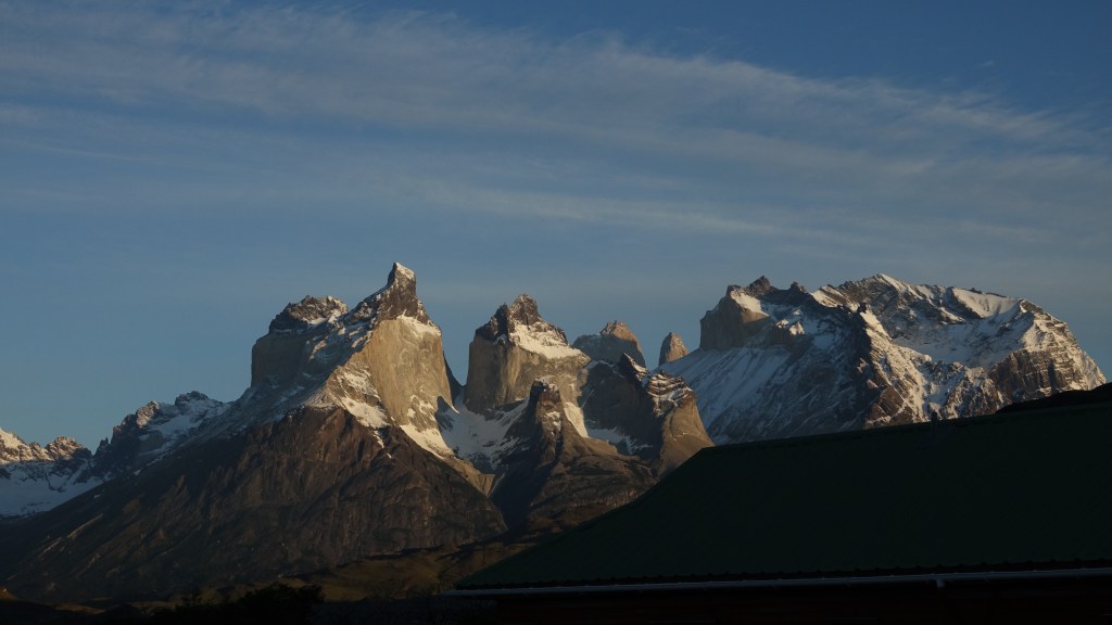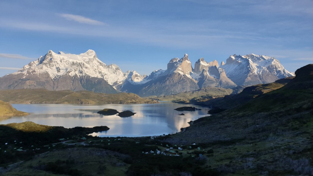 Am dritten Tag war nochmals eine Wanderung angesagt: Wir bleiben aber eher unten und laufen zum Lago Nordenskjöld welcher direkt unter den Cuernos del Paine liegt. An diesem Tage schaffe ich es mal früh aus den Federn und besteige allein den benachbarten Hügel. Die Belohnung sind wolkenfreie Berge und eine unglaublich ruhige Stimmung.