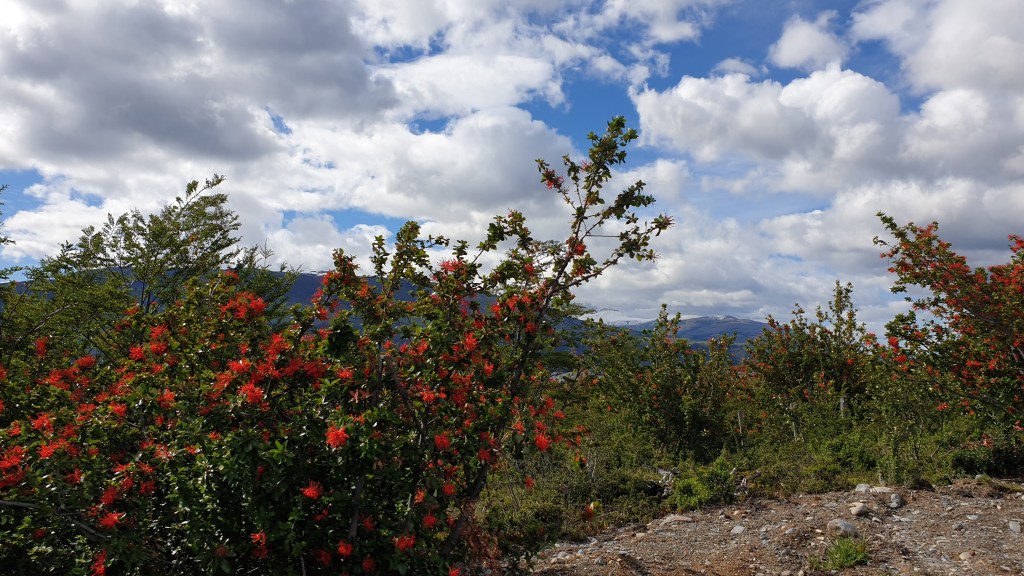 26. – 28.11.2019: Der Nationalpark im Süden Chiles bietet allein schon Möglichkeiten für Wochen. Berge, Wälder, Seen, Gletscher und das alles in wirklich einzigartigem Arrangement. Die Fahrt in den Nationalpark erinnert landschaftlich an Westkanada. Speziell die roten Büsche machen aber einen schönen Unterschied. Nach dem Einchecken in den Nationalpark erreichen wir bald den Lago Grey, der eigentlich die Lagune des gleichnamigen Gletschers ist.