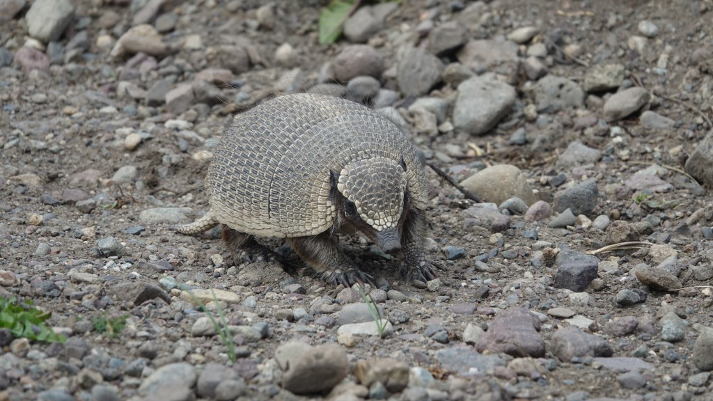 Dann geht die Schranke auf und wir rollen am chilenischen Grenzstein vorbei einige Kilometer durchs Grenzland bis zum chilenischen Posten. Hier ist alles deutlich exakter, sauberer, neuer, grösser, halt Chile, das Preussen Südamerikas. Nach der Einreiseprozedur rollen wir auf Waschbrett in ein wildes Tal, jagen ein Gürteltier und staunen und staunen.