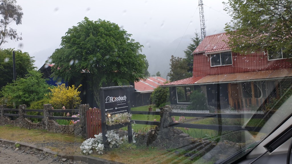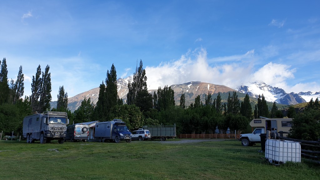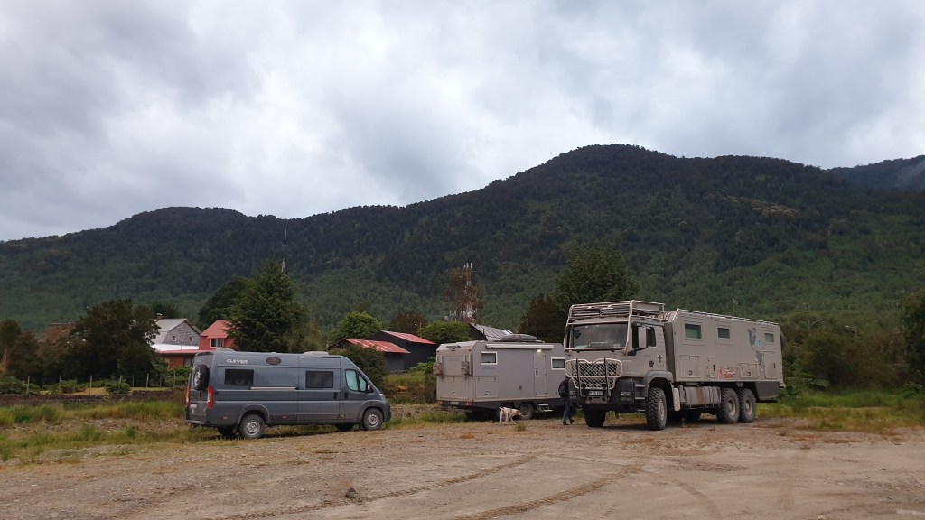 Puerto Puyuhuapi liegt in einer Meeresbucht, die auch ein Geothermalgebiet beheimatet. Es gibt verschiedene Bäder und Hotpools. Angesichts Regenwetter und frischen Temperaturen lassen wir diese aber sein und suchen im Ort ein Plätzchen für uns und die weiteren Ausreisser. Unweit des Zentrums gibt es einen geeigneten Kiesplatz der auch nahe von Supermarkt und Restaurants liegt. Wir geniessen später in der Cocineria Estrella del Sur wirklich fantastischen Fisch und warten bis der Rest der Truppe eintrifft. Der grosse MAN ist zum Glück unüberhörbar. So bescheren wir dem liebenswerten Restaurant noch einige weitere Gäste…