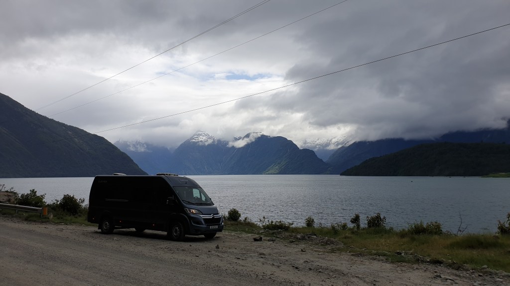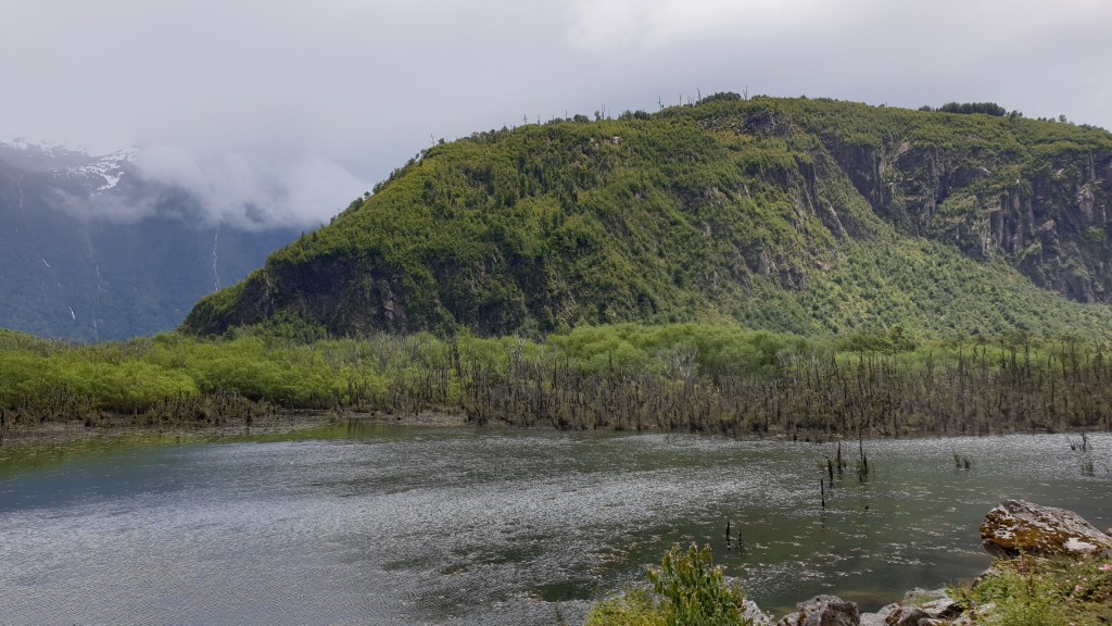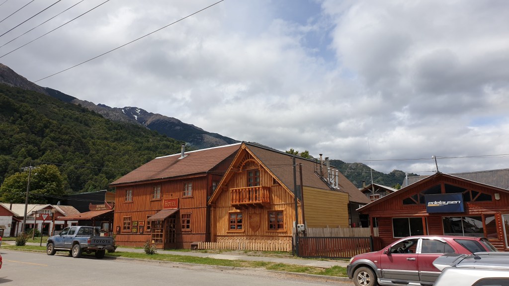 10.12.2019: Puerto Puyuhuapi ist ein gastfreundlicher Ort und wir wären gern noch etwas geblieben. Aber die Gruppe strebt nach Norden und wir müssen sie wieder erreichen. Die heutige Planung sieht definitiv wieder einen Grenzübertritt vor. Wir verabschieden uns nach weiteren Kilometern mit unterschiedlichen Strassenqualitäten in Villa Santa Lucia von der Carretera Austral um in Richtung Futaleufú zu fahren. Es ist wieder Schotterstrecke angesagt. Mal besser mal schlechter entlang des Lago Yelcho und später durch ein schönes Tal führt die Route über die 235 und die 231 in den hübschen Ort, der auf einer Ebene zwischen den Bergen liegt und nicht weit von der Grenze entfernt ist. Wir machen einen Rundgang durch den Ort der von einem leckeren Stück Beerentorte in einem netten Cafe gekrönt wird. Futaleufú gefällt uns, aber die Grenze ruft.