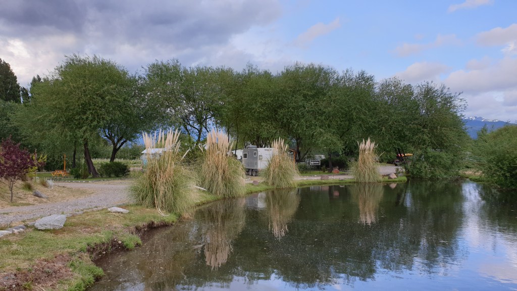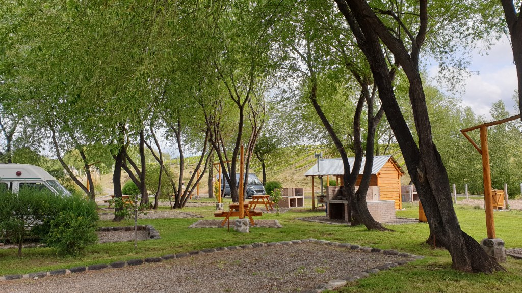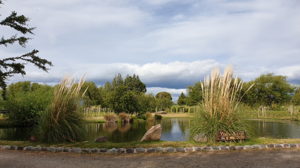 Nach einem kurzen Stück Asphaltstrasse kommen wir an die Grenzstation und checken aus Chile aus und sind nach einem weiteren Einreiseprozedere fortan wieder in Argentinien auf einer eher schlechten Piste unterwegs. Gleich nach der Grenze sehen wir einen Hinweis auf einen Campingplatz in 20 Kilometern Enfernung. Diesen steuern wir auch schliesslich an und er ist ein echter Volltreffer: Viñas del Nant y Fall, ein Weingut mit angeschlossenem Stellplatz. Besser geht es nicht. Es gibt die komplette Ausstattung, dazu einen kleinen Teich, Grill, Hofladen, Restaurant. Ein echtes Paradies, dieser Familienbetrieb.