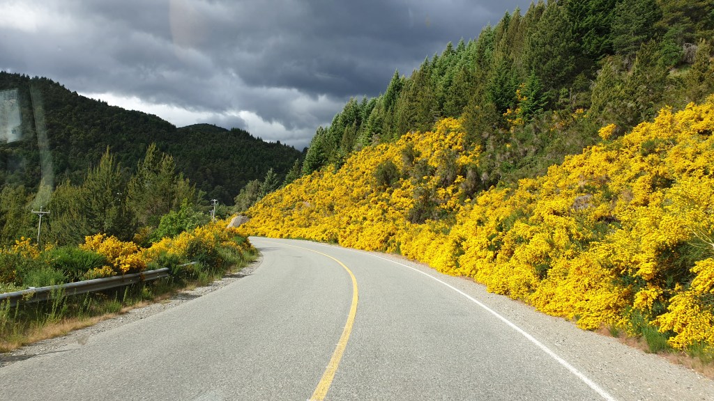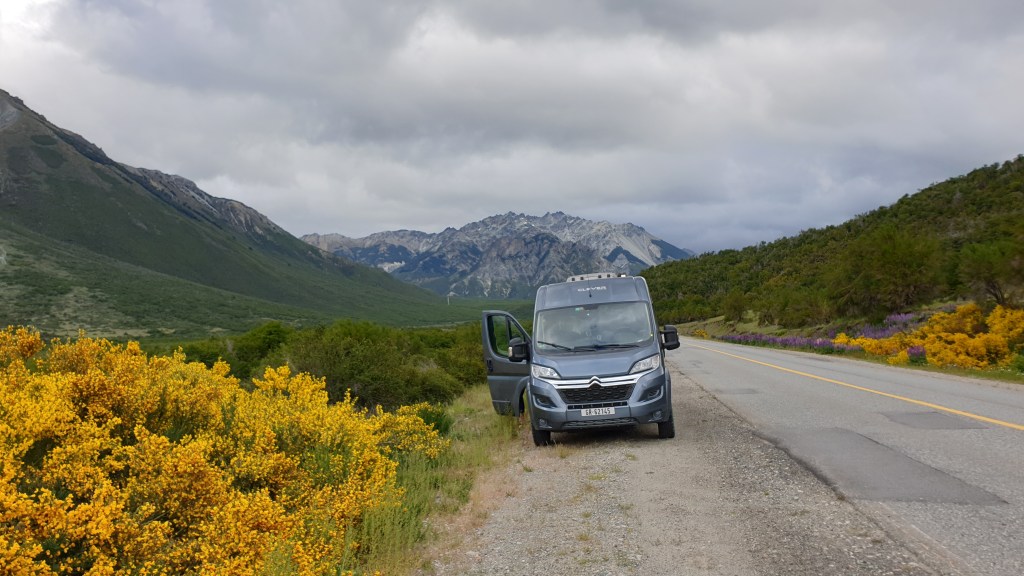 Somit fahren wir wieder aus den Bergen heraus in die Pampa. Immer die Anden links im Blick und rechts die argentinische Weite. Stark auch der Seitenwind auf vielen Abschnitten, der manche Gegenlenkbewegung erfordert. Kurz nach Esquel sind wir wieder auf der Ruta 40 und streben El Bolson entgegen. Der Ort liegt wieder mehr in den Bergen, es ist weniger windig, wieder grün und teilweise dicht mit gelben Büschen bestanden, oder bewaldet. Die Region erinnert an Kanada. Zeit für Stopps nehmen wir uns nicht oft, wir geniessen die Etappe durch die Windschutzscheibe, das Fahren macht Spass und wir kommen gut auf einen 60er Schnitt.