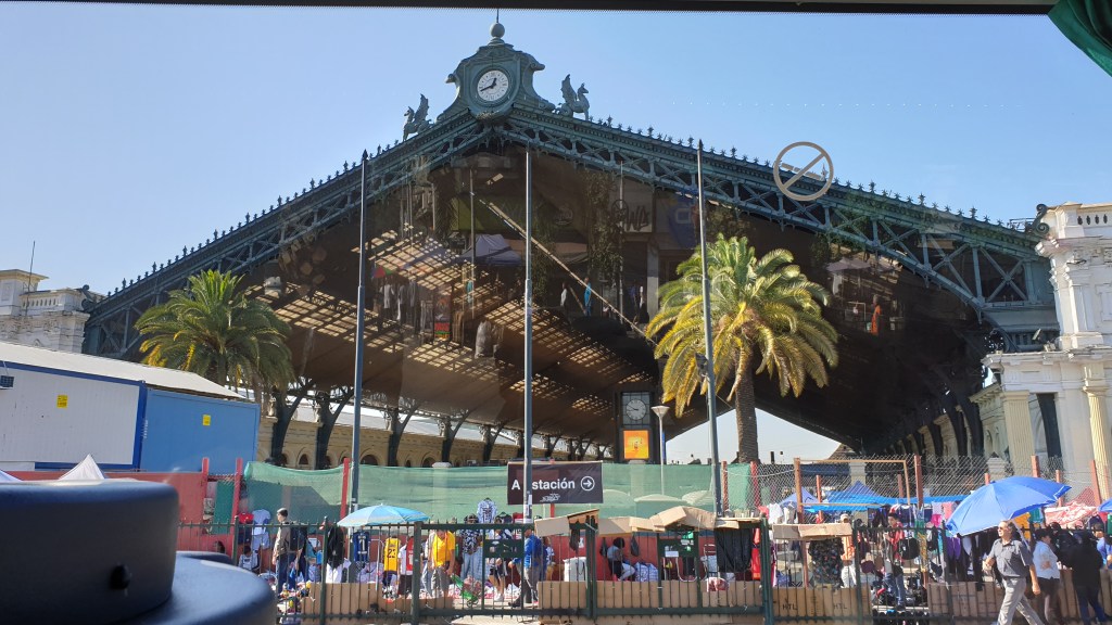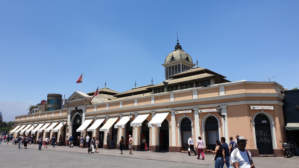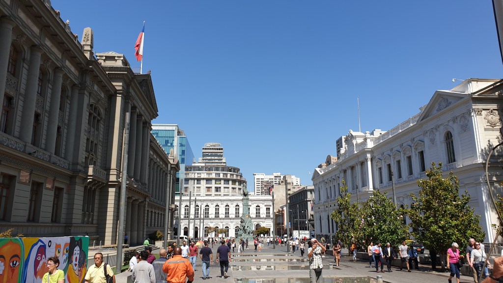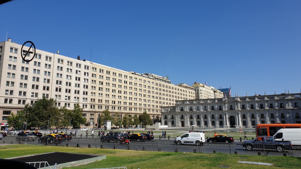 Santiago ist mit Abstand Chiles grösste Stadt. Im Ballungsraum wohnen über 7 Millionen Menschen, Tendenz um mehrere 10000 pro Jahr zunehmend. Vom Übernachtungsplatz werden wir per Bus und mit deutscher Reiseleitung in die Stadt gefahren. Von aussen nach innen nimmt der Wohlstand sichtbar zu – zuerst Wellblech, dann Plattenbausilos, dann alte Bausubstanz, die schliesslich in der Innenstadt auch sehr gut erhalten ist. Speziell sind die Bauten rund um den Präsidentenpalast La Moneda, die das Verwaltungsviertel bilden. Wir erfahren viel über die Regierung Allende und den Putsch von Pinochet.