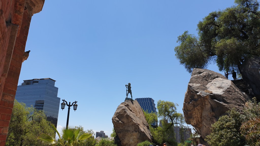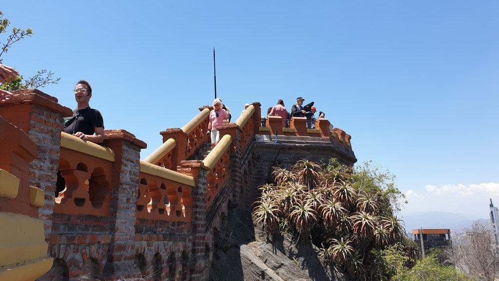 Nach viel Stadt und Bildung ist es am Mittag etwas Zeit für Grün. Wir besuchen die Keimzelle der Stadt, den Cerro Santa Lucía, einen Park welcher auf einem felsigen Hügel inmitten der Stadt liegt. Von hier ist trotz Smog die Aussicht auf die Stadt mit ihren zahllosen Hochhäusern und die nahen Andengipfel grandios.