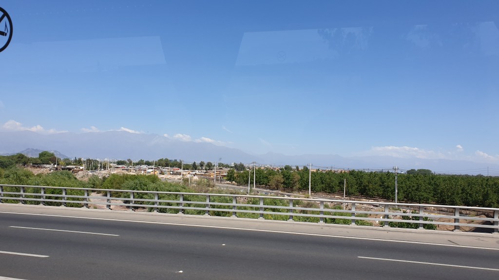 Chiles Hauptstadt steht für die nächsten Tage auf dem Programm. Vom Weingut fahren wir knapp 500 Kilomter nordwärts, kommen auf der Autobahn gut voran in die am dichtesten besiedelte Region von Chile. Zwanzig Kilometer vor dem eigentlichen Ballungsraum mit seinen über sieben Millionen Menschen haben wir eine europäisch anmutende Verkehrsdichte und demzufolge auch kurze Staus. Unser Stellplatz liegt westlich des Talkessels in einer fruchtbaren Ebene und wurde aufgrund der Unruhen im Herbst kurzfristig eingeplant. Nach dem langen Fahrtag gibt es kein Abendprogramm mehr.
