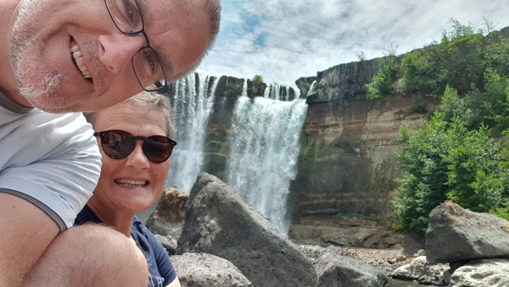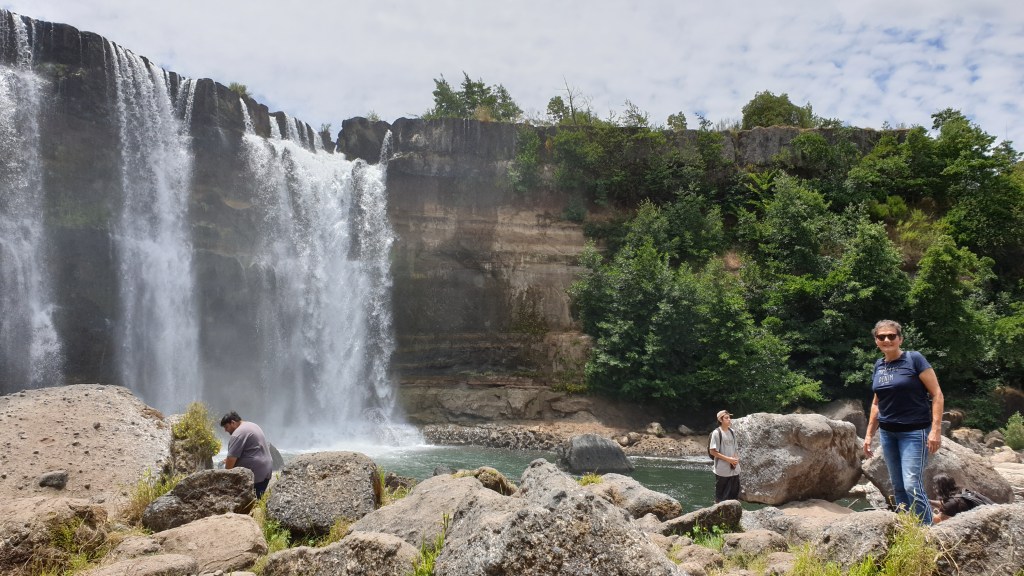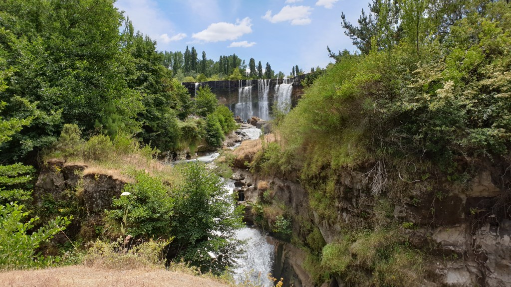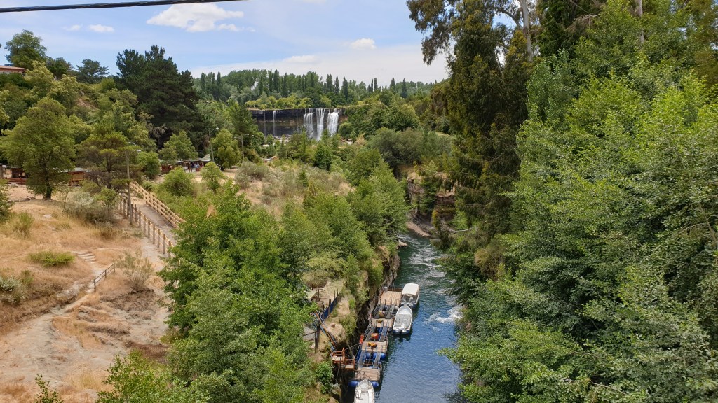 Vor dem Wein gibt es aber noch eine weitere flüssige Attraktion: Die Saltos del Laja, Chiles höchste Wasserfälle. Die knapp 30 Meter hohen Fälle sind an diesem Tag nicht sehr wasserreich und auch insgesamt eher eine regionale Attraktion. Aber das Ambiente ist ganz hübsch und der Spaziergang eine willkommene Abwechslung an diesem langen Fahrtag.