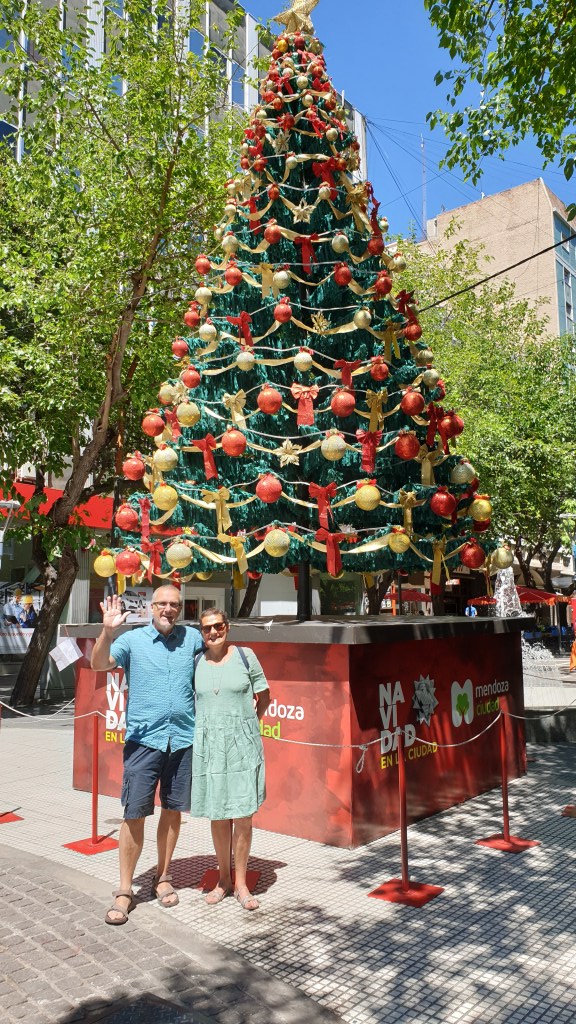 22.12.2019: Heftig steuern wir auf Weihnachten zu. Und tatsächlich treffen wir in der Stadt Mendoza auch auf einige geschmückte Bäume.
