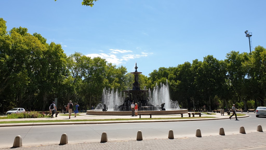 Angesichts von Temperaturen über 25 Grad kommt die Weihnachtsstimmung aber nur sehr verhalten auf. Mendozas Innenstadt ist fast schon als mondän zu bezeichnen. Es gibt grosszügige Parkanlagen, reichverzierte Springbrunnen und von Bäumen gesäumte Strassen. Die Stadt ist sehr grün. Das Wasser liefern noch die Anden. Regen fällt hier nur selten. Schon die Westseite der Anden ist hier nicht mehr wirklich niederschlagsreich und die Ostseite eigentlich Wüste. Stadt und Weinfelder brauchen viel Wasser und mit der Klimaveränderung scheint die Versorgung zukünftig nicht mehr sichergestellt.