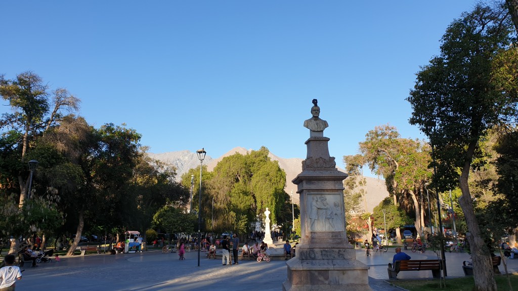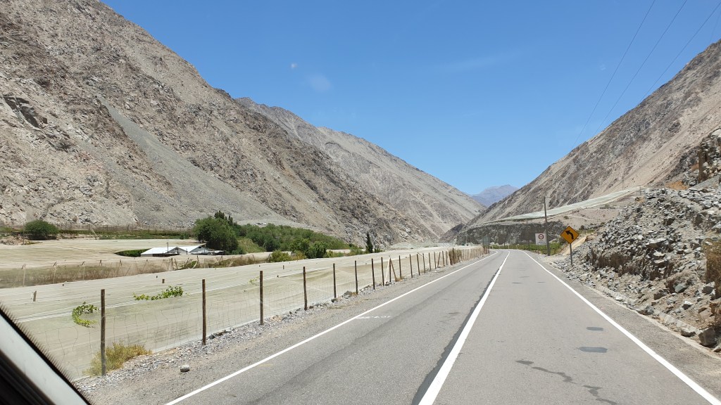 Vicuña heisst die Kleinstadt am Westhang der Anden. Am Tagesziel beziehen wir einen engen, mauergesäumten Hof. Sicherheit geht vor. Das Einparken gleicht einem Puzzle. In einem Hotel gibt es Abendessen und einen leckeren Pisco auf der Dachterasse. Ein abendlicher Spaziergang rundet einen eindrucksvollen – das Wort passt hier perfekt – Tag ab.