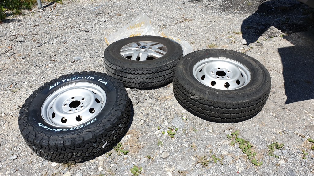 Beim Fabrikat meine ich Vorteile zugunsten des BFGoodrich ALL TERRAIN T/A KO2 zu erkennen. Diese Reifen wurden dann auch bestellt. Die Tragfähigkeit ist mit Lastindex 115 mehr als ausreichend, die Gewichtung der Eigenschaften passt für unser Vorhaben: Robust, Traktion auf lockerem Untergrund, gute Laufleistung.