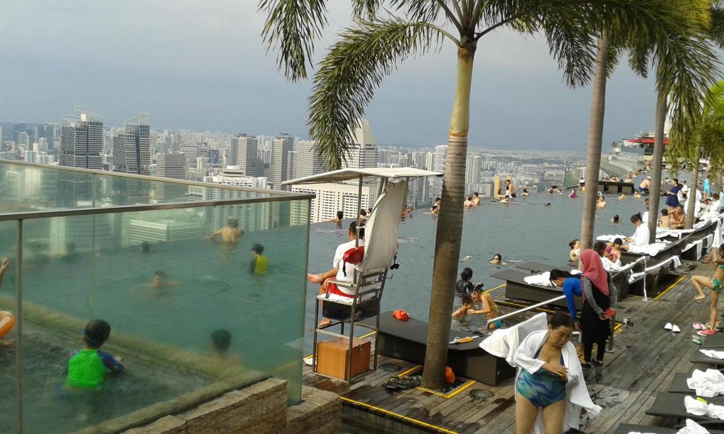 Von Zürich ging es im A 380 nach Singapur, wo wir im Marina Bay Sands Hotel für eine Übernachtung zugegeben etwas über unsere Verhältnisse leben. Aber der Infinity Pool in 200 Metern Höhe musste einfach sein, wenn man schon mal in der Gegend ist…