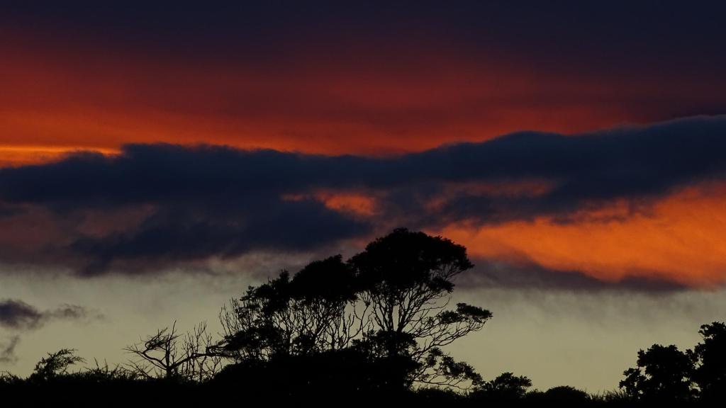 Cook Strait bei Sonnenuntergang: Die Meerenge zwischen Süd- und Nordinsel ist berüchtigt. Selbst bei Stellung „Moderate“ auf der Anzeige der zu erwartenden Wellenhöhe schaukelt die Interislander-Fähre ordentlich und der Wind pfeift einem an Deck um die Ohren. Das Foto bei Sonnenuntergang mag einen Eindruck geben, zeigt das Erlebte aber nur in Ansätzen.
