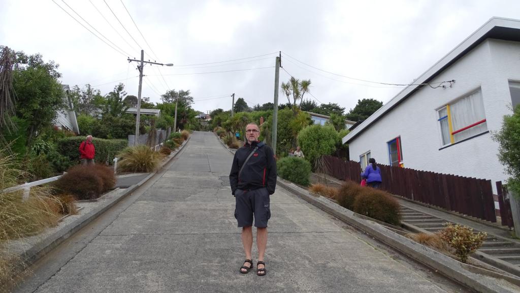 Die steilste Strasse der Welt in Dunedin – Ja die Baldwin Street ist wirklich steil! Die 33% bringen Fussgänger zum Schnaufen und Reifen oder Kupplungen frontgetriebener Autos zum Qualmen. Ansonsten hat uns Dunedin nicht extrem fasziniert, das graue Wetter wird auch dazu beigetragen haben.