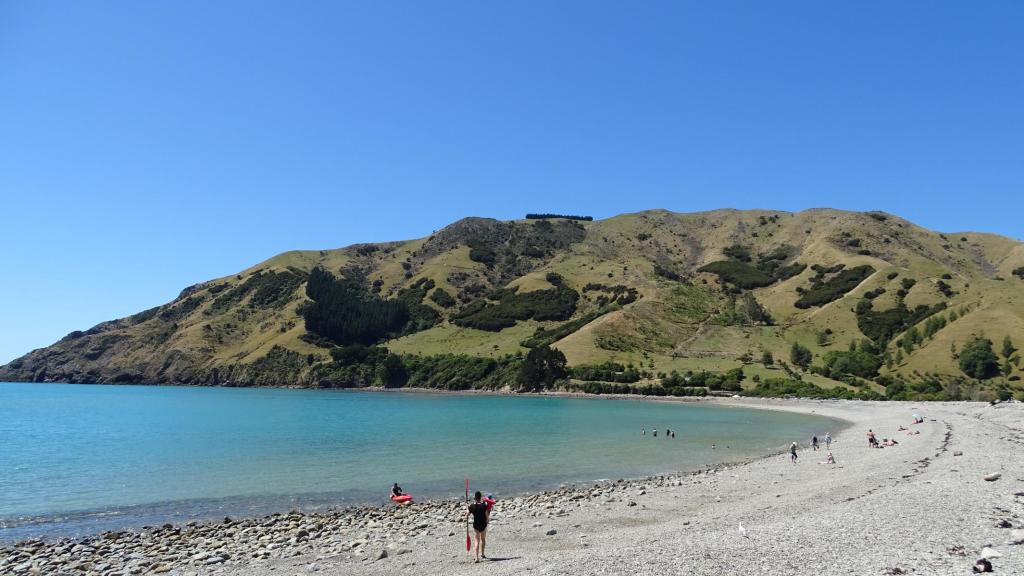 Die Cable Bay liegt idyllisch zwischen dem hübchen Städchen Nelson und den berühmten Marlborough Sounds. Das Wasser hat badetaugliche Temperaturen, keine gefährliche Strömung und bei Ebbe kam auch der Sandstrand zum Vorschein. Der gepflegte, kleine Campingplatz ist keine fünf Minuten weg – super!